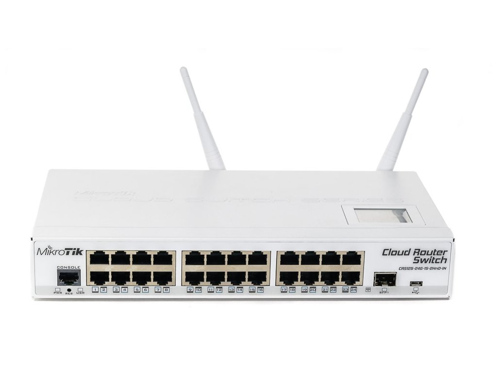 RTB-CRS125-24G-1S-2HND-IN je zařízení z řady spravovaných přepínačů Mikrotik. Jedná se o plnohodnotný přepínač vrstvy 3 spravovaný systémem RouterOS úrovně 5.