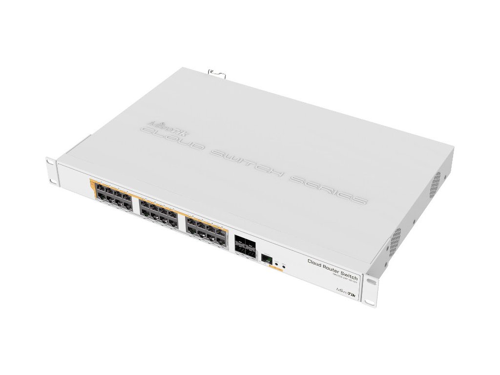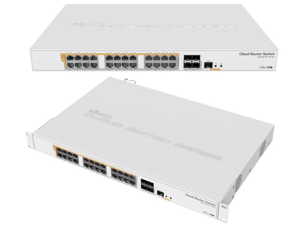 - CRS328-24P-4S+RM je spravovaný přepínač MikroTika vybavený 24 porty Gigabit Ethernet. Každý ethernetový port pracuje samostatně a nabízí výstupní napájení PoE.
