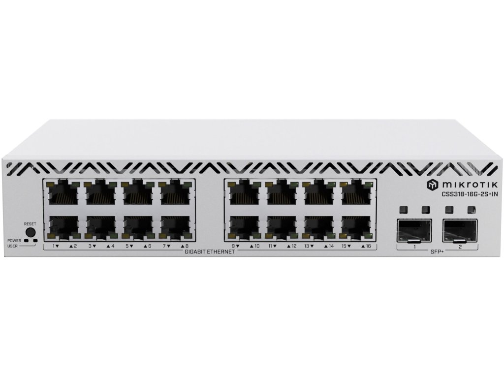 MikroTik CSS318-16G-2S+IN je kompaktní a výkonný síťový přepínač, ideální pro malé až středně velké kanceláře a domácí sítě. Je vybaven 16 porty Gigabit Ethernet a 2 porty SFP+ 10G a poskytuje flexibilitu a vysokou propustnost pro náročná síťová prostředí.