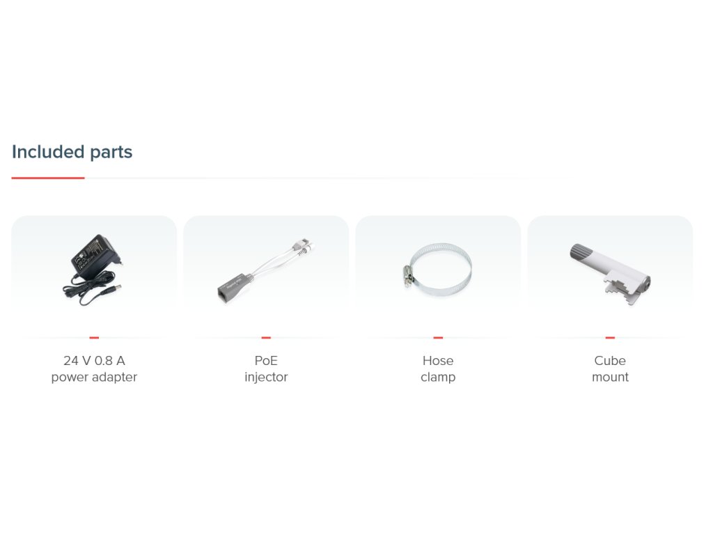 CubeG-5ac60ay je napájen prostřednictvím PoE ve standardu 802.3af/at. Součástí balení je běžný stejnosměrný napájecí zdroj 24 V 0,8 A a injektor PoE. Jednotka se instaluje na sloup pomocí držáku Cube, který je součástí sady. Kryt byl vybaven pevnou kovovou základnou - pro lepší možnosti montáže a chlazení. Tvar zařízení Cube sleduje čistou praktičnost: je odolné, diskrétní a kompaktní.