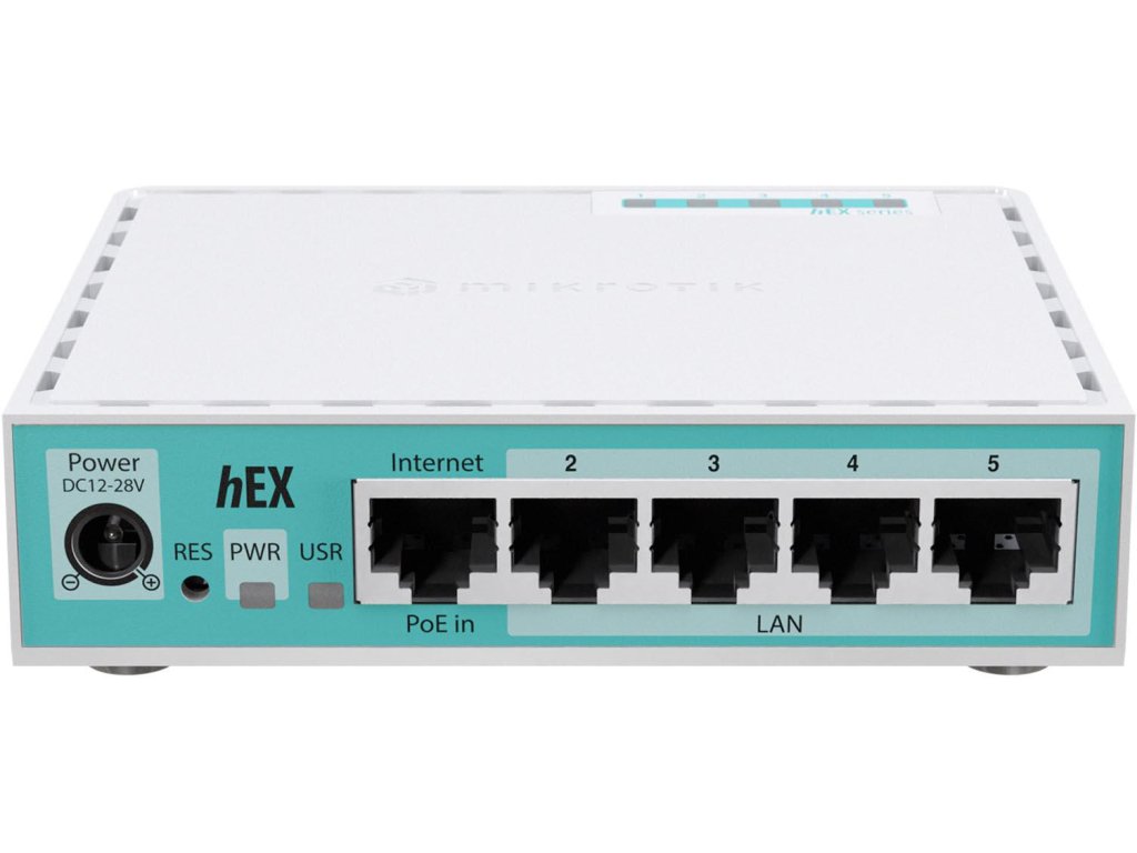 MikroTik E50UG má dvakrát vyšší výkon než MikroTik RB750Gr3 za stejnou cenu. Router má 5x gigabitový ethernetový port (10/100/1000 Mb/s) a port USB 2.0. Na prvním ethernetovém portu je vstup pro napájení PoE. MikroTik hEX podporuje pasivní PoE a rozsah vstupního napětí je 12 28 V DC.