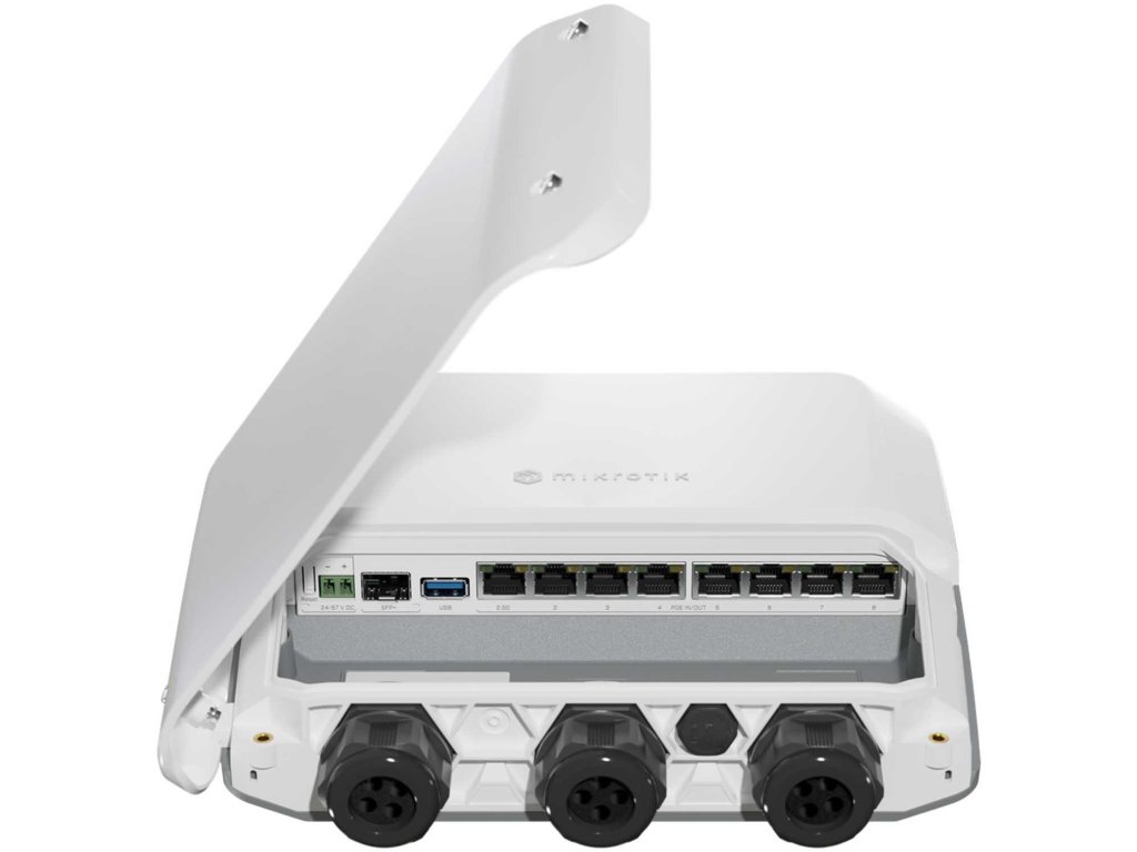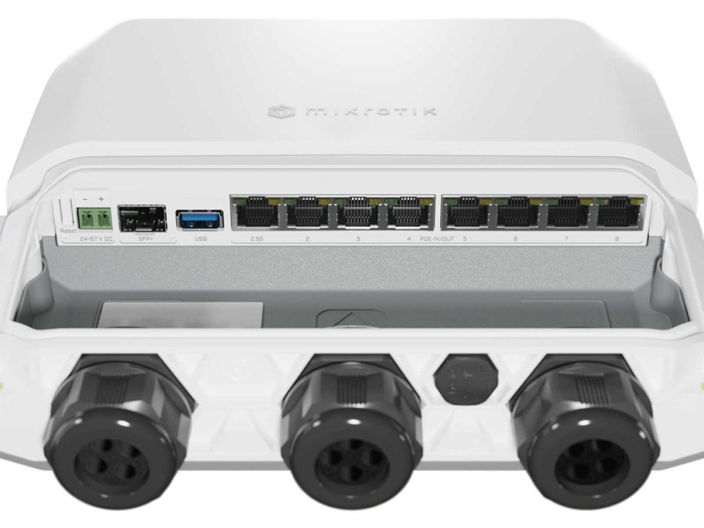 MikroTik RB5009UPr+S+OUT jedná se o nejnovější model řady RB5009. Jedná se o vodotěsnou verzi routeru PoE RB5009UPr+S+IN určenou pro venkovní použití. Model RB5009UPr+S+OUT se vyznačuje rozsáhlou redundancí napájení za nejlepší cenu. Je vybaven 7x gigabitovým portem Ethernet, 1x 2,5 gigabitovým portem Ethernet, slotem 10G SFP+, 1 GB paměti RAM a 1 GB paměti NAND, dále moderním čtyřjádrovým procesorem Marvell Armada ARMv8 a až 9 (!) možnostmi napájení. To vše v odolném vodotěsném pouzdře s krytím IP66.