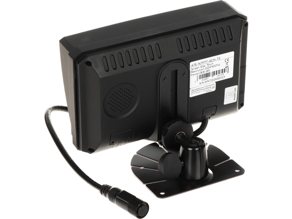 Mobilní DVR ATE-NTFT7-4CH-T3 s monitorem umožňuje nahrávat a zobrazovat video až ze 4 mobilních kamer současně. Záznamy se ukládají na paměťovou kartu SD (není součástí dodávky). Přehledný 7" displej s LED podsvícením umožňuje sledovat obraz z kamer v reálném čase.
