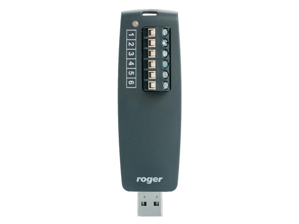 - Pro komunikaci se systémem řízení přístupu Roger RACS