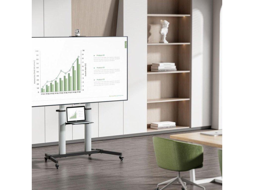 Další funkce: Pokročilé výškové nastavení stojanu; nastavitelná polička pro telekonferenční kameru umístěnou nad televizorem
