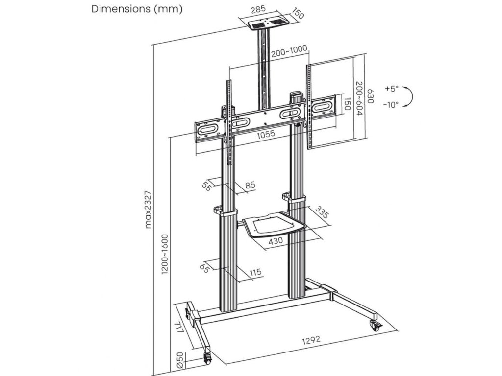 MOBILNÍ STOJAN + DRŽÁK pro 60-100″ TV 100KG S-15-AL ART Vesa max. 1000×600 HEAVY DUTY