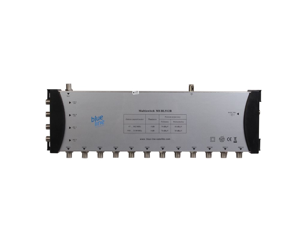 5/12 Multipřepínač BL512B Blue Line je zařízení, které umožňuje distribuovat signály přijímané z jednoho satelitu a pozemního vysílání DVB-T do čtyř satelitních nebo pozemních přijímačů. Multiswitch automaticky nastaví typ signálu, který bude přenášen do přijímače. PŘÍJEM Z JEDNOHO SATELITU PRO 12 PŘIJÍMAČŮ. POZNÁMKA: Multiswitch spolupracuje pouze s měniči Quattro!