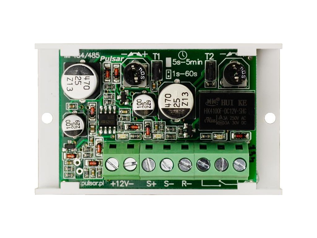 Modul časového relé PC4 Použití: sepnutí relé pro čas T2 po čase T1 Napájení: 10÷14VDC Řídicí vstupy: S+, S-, R- Výstup: relé -C/NO/NC, 1A@30VDC/50VAC Časový rozsah: 1s÷5min Optická signalizaceDoplňkové parametry