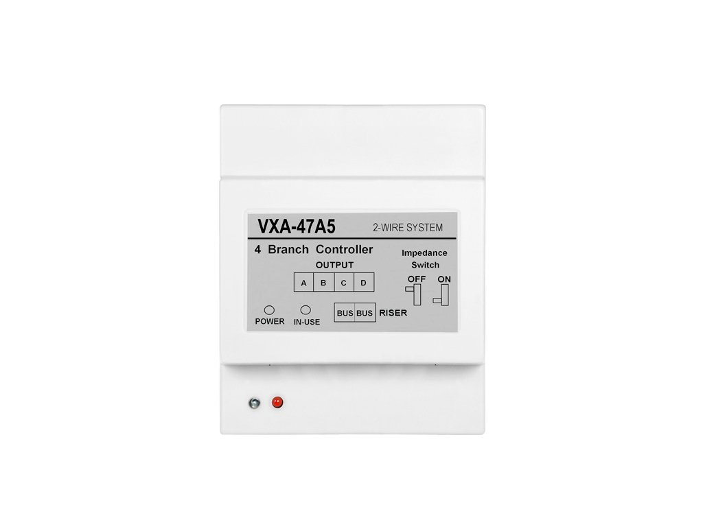 Rozdělovací modul VXA-47A5 (rozdělovač signálu) usnadňuje instalaci dvouvodičového videointerkomového systému "EURA 2 EASY" na podlažích vícepatrových budov a umožňuje efektivnější připojení 4 monitorů (např. z jednoho patra budovy) k systémové sběrnici, čímž se výrazně snižuje délka použitých propojovacích kabelů.