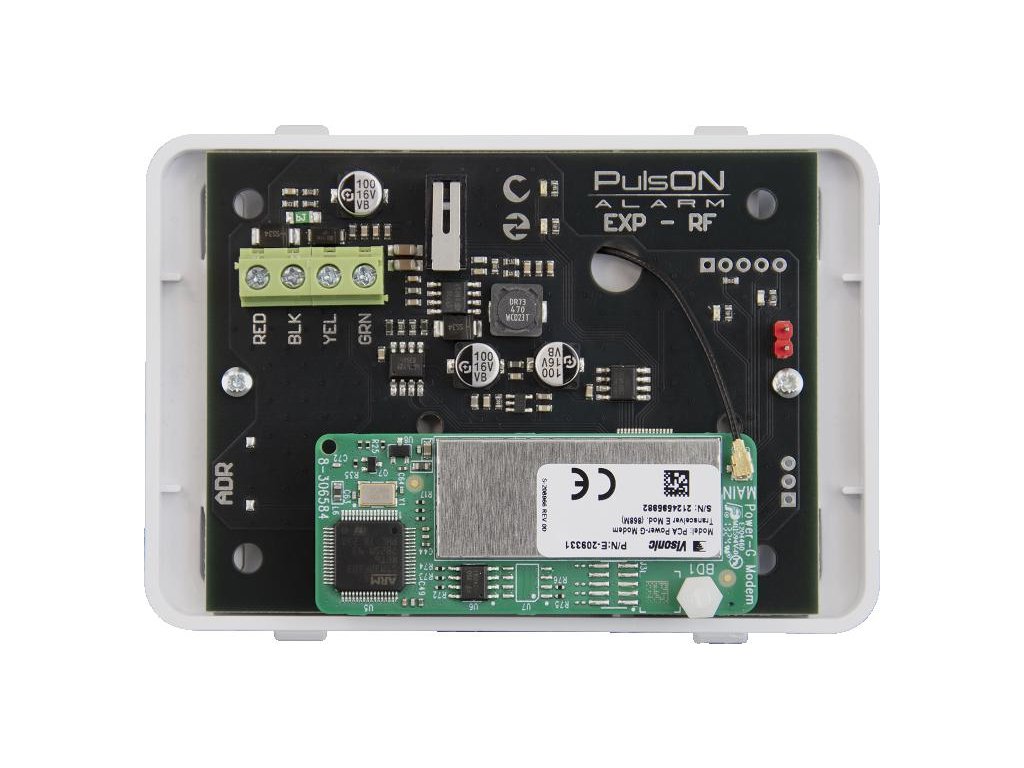 EXP-RF (PowerG) je rozšiřující modul určený k integraci bezdrátových zařízení pracujících s technologií PowerG do systému PulsON Alarm. Modul využívá pokročilý komunikační protokol PowerG a zajišťuje stabilní obousměrnou komunikaci odolnou proti rušení.