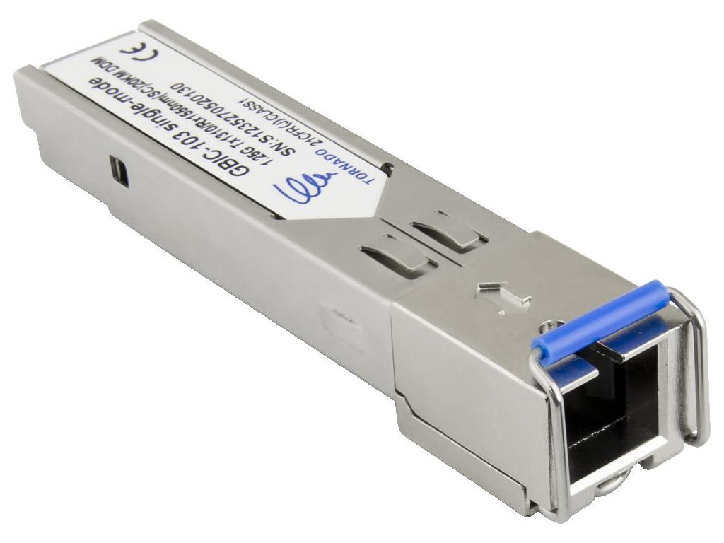 Modul GBIC-103 SFP, single-mode, 1,25G, Tx:1310 / Rx:1550, SC, 20KM, DDM (TORNADO) Použití: Modul GBIC-103 SFP je určen k převodu elektrického signálu na optický. Je určen pro přenos po jednovidových optických vláknech (SM)Doplňkové parametry