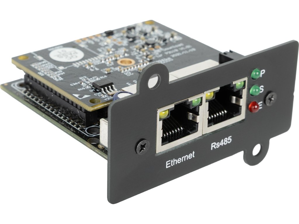 Modbus RTU (485): karta může fungovat jakoAnketa (hlavní)v tomto režimu může dotazovat až 8 externích senzorů/zařízení nebo jakoSlavenapříklad zpřístupněním parametrů UPS PLC. Režimy jsou přepínatelné a vzájemně se vylučují.