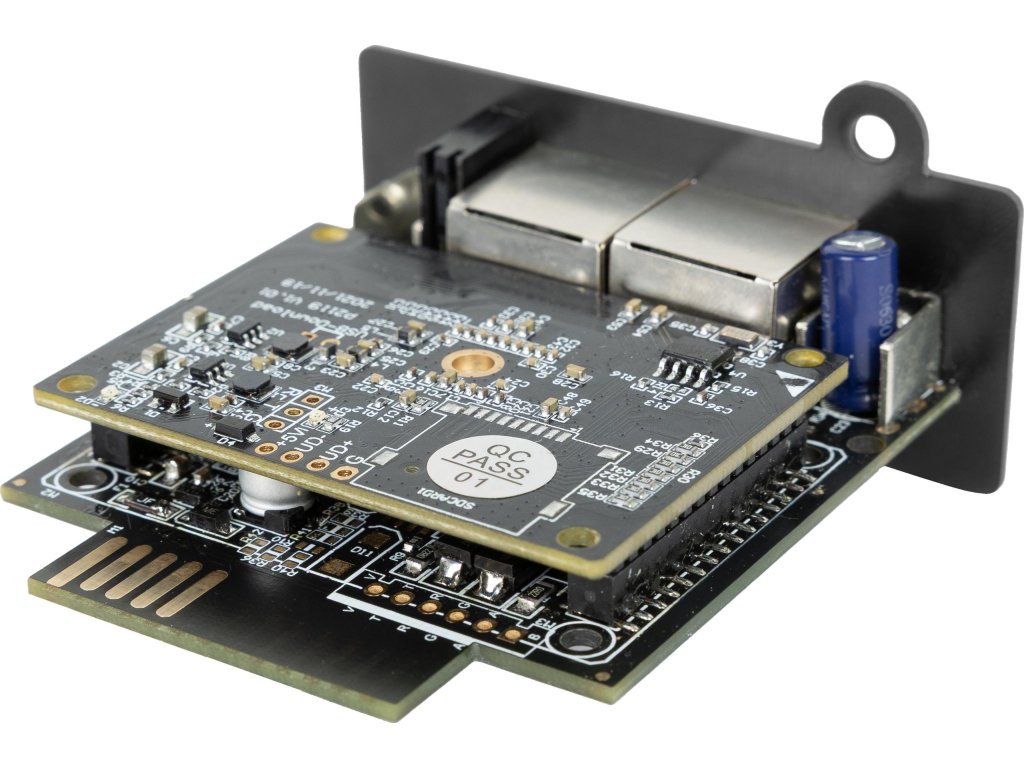 Agent SNMP karty podporujeUPS-MIB (RFC1628) a vlastní implementace takzvané soukromé společnosti (PPC), která umožňuje rozsáhlé řízení různých parametrů nejen samotné UPS, ale také senzorů prostředí (EMD), které uživatel karty připojí. SNMP TRAP umožňuje automatické (pasivní) hlášení alarmů verzí 1 a v2c a jednoduchá sada pro ovládání UPS připravená k použití na webových stránkách poskytuje jednoduché ovládací příkazy (10s test, zapnutí/vypnutí bypassu, vypnutí bzučáku). Základní verze v3 poskytuje přihlášení pomocí přihlašovacího jména a hesla.