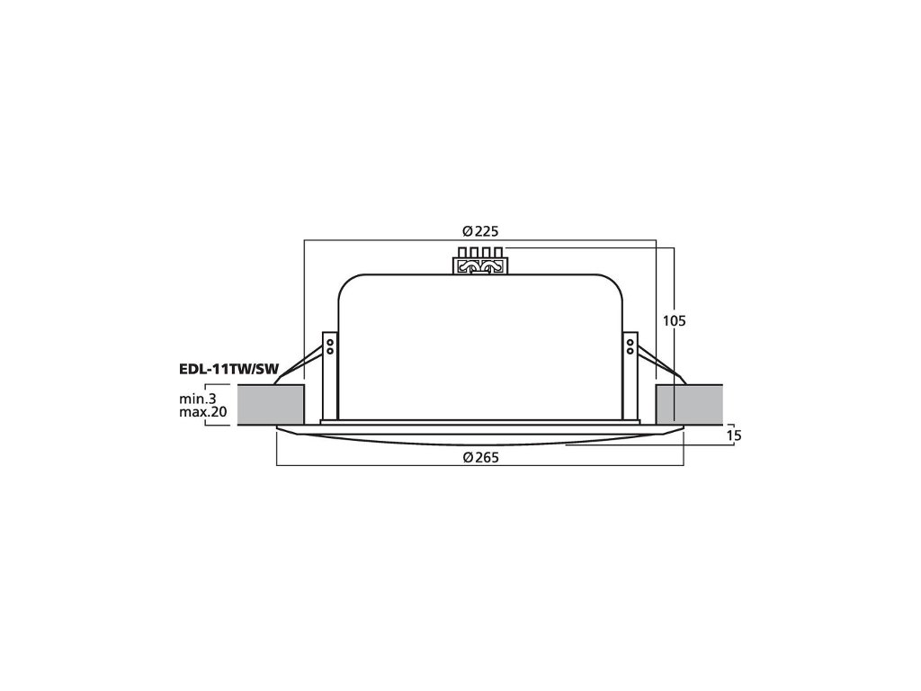 - Montážní otvor Ø : 225 mm x 110 mm