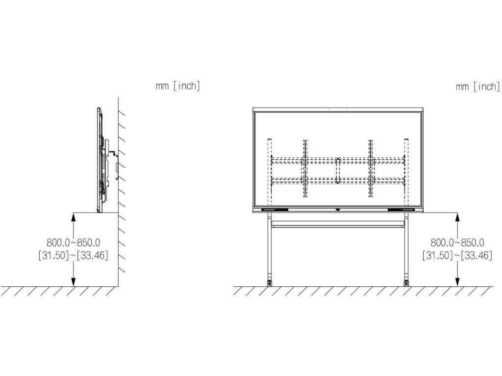| Vzdálenost otvorů | 65 palců: (19,69" × 15,75"): 500 mm × 400 mm 75 palců: (23,62" × 15,75"): 600 mm × 400 mm 86 palců: 800 mm × 400 mm (31,50" × 15,75") |
