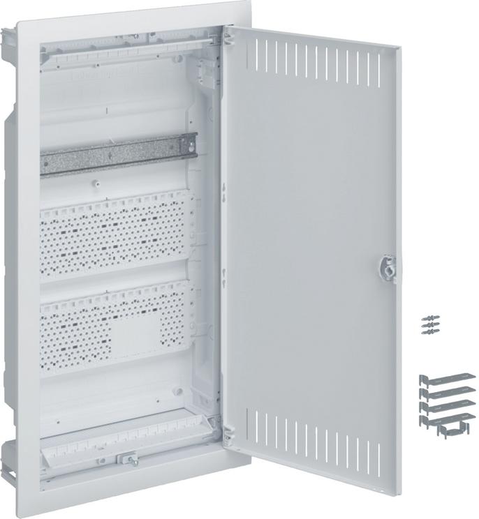 Multimediální rozvaděč Hager volta VU36NWB pro zapuštěnou montáž je ideálním řešením pro organizaci kabeláže a multimediálního vybavení v domě nebo bytě. Je vybaven lištou TH a perforovanými montážními deskami. Vyznačuje se snadnou instalací díky zabudované vodováze, rámečku pro zakrytí nerovností omítky a upevňovacím prvkům. Poskytuje maximální bezpečnost (třída ochrany II, IP30). Dodává se s odvětrávanými ocelovými dvířky.
