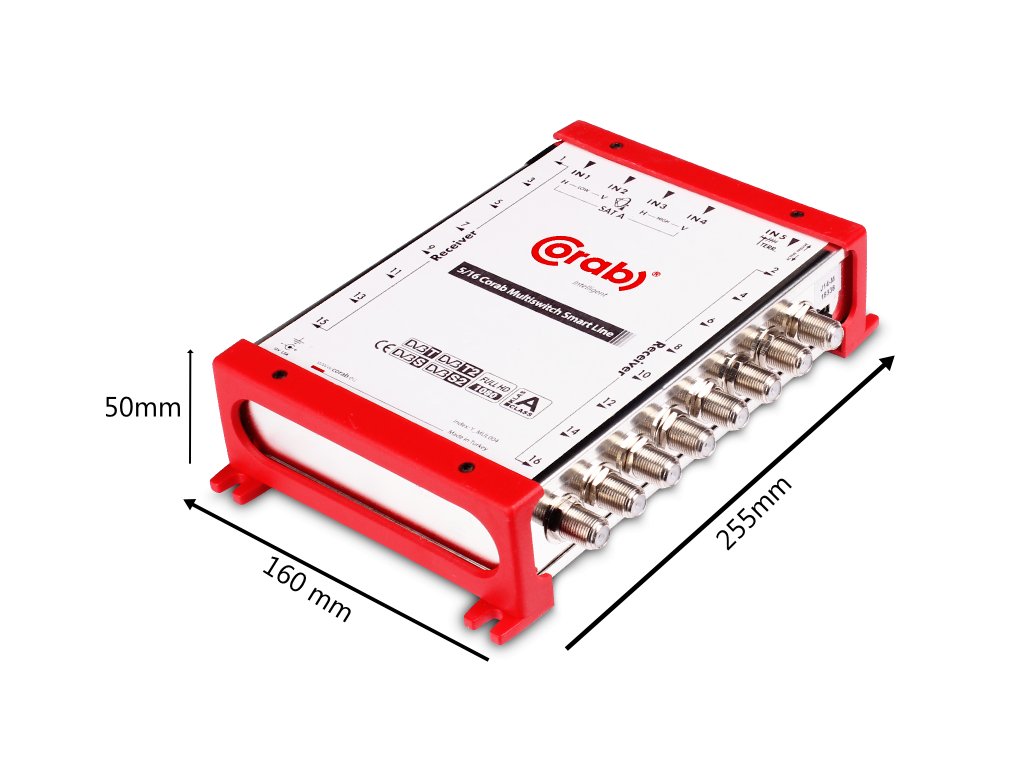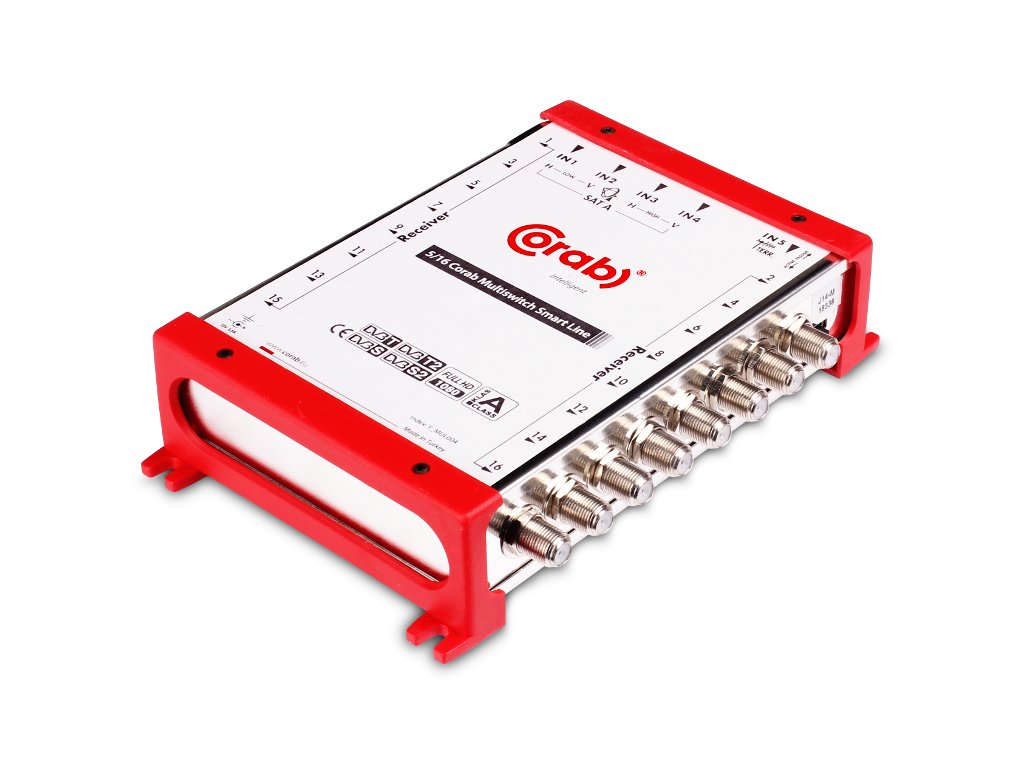 CORAB MULTISWITCH SMART LINE je zařízení pro rozdělení televizního signálu, má 5 vstupů: 4 satelitní a 1 pozemní a 16 satelitních/pozemních výstupů. Multipřepínač má interní napájení a vysoce kvalitní kryt zaručuje vysokou úroveň stínění. Zařízení samostatně rozpozná, zda je anténa aktivní nebo pasivní, a podle toho upraví napětí.