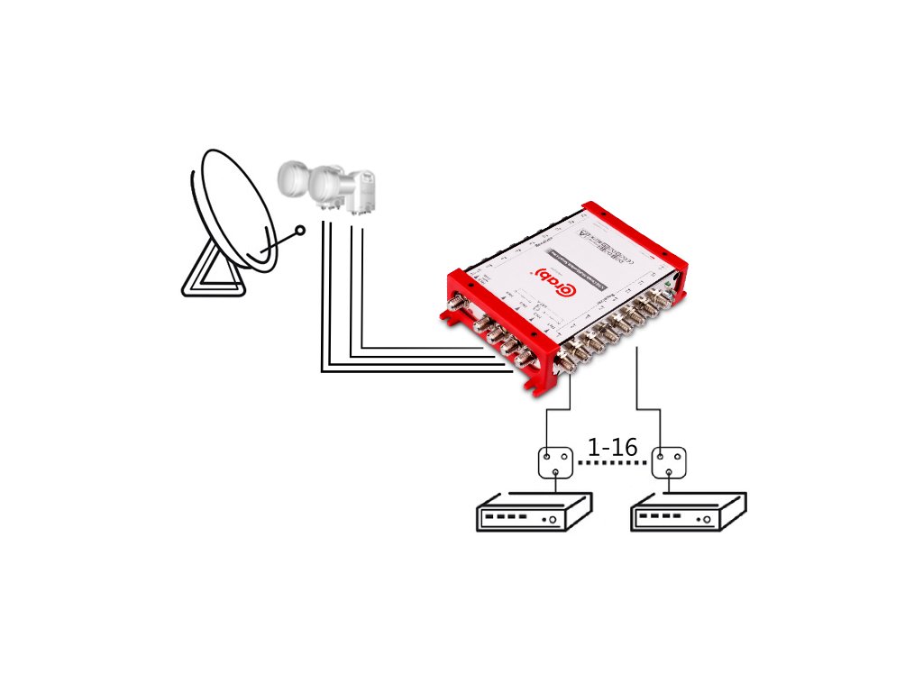 Anténní kabely připojující signál k zařízení by měly být nejvyšší kvality a splňovat příslušné technické normy pro správnou funkci zařízení. Zařízení umožňuje připojit až 16 satelitních přijímačů. Multiswitch automaticky rozpozná typ signálu, který má být přenášen do přijímačů.