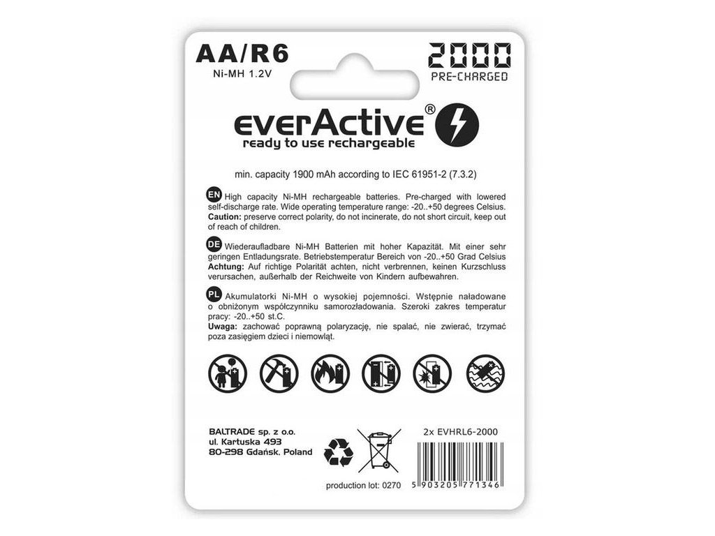 Nabíjecí baterie everActive R6/AA Ni-MH 2000 mAh (krabička 2ks)