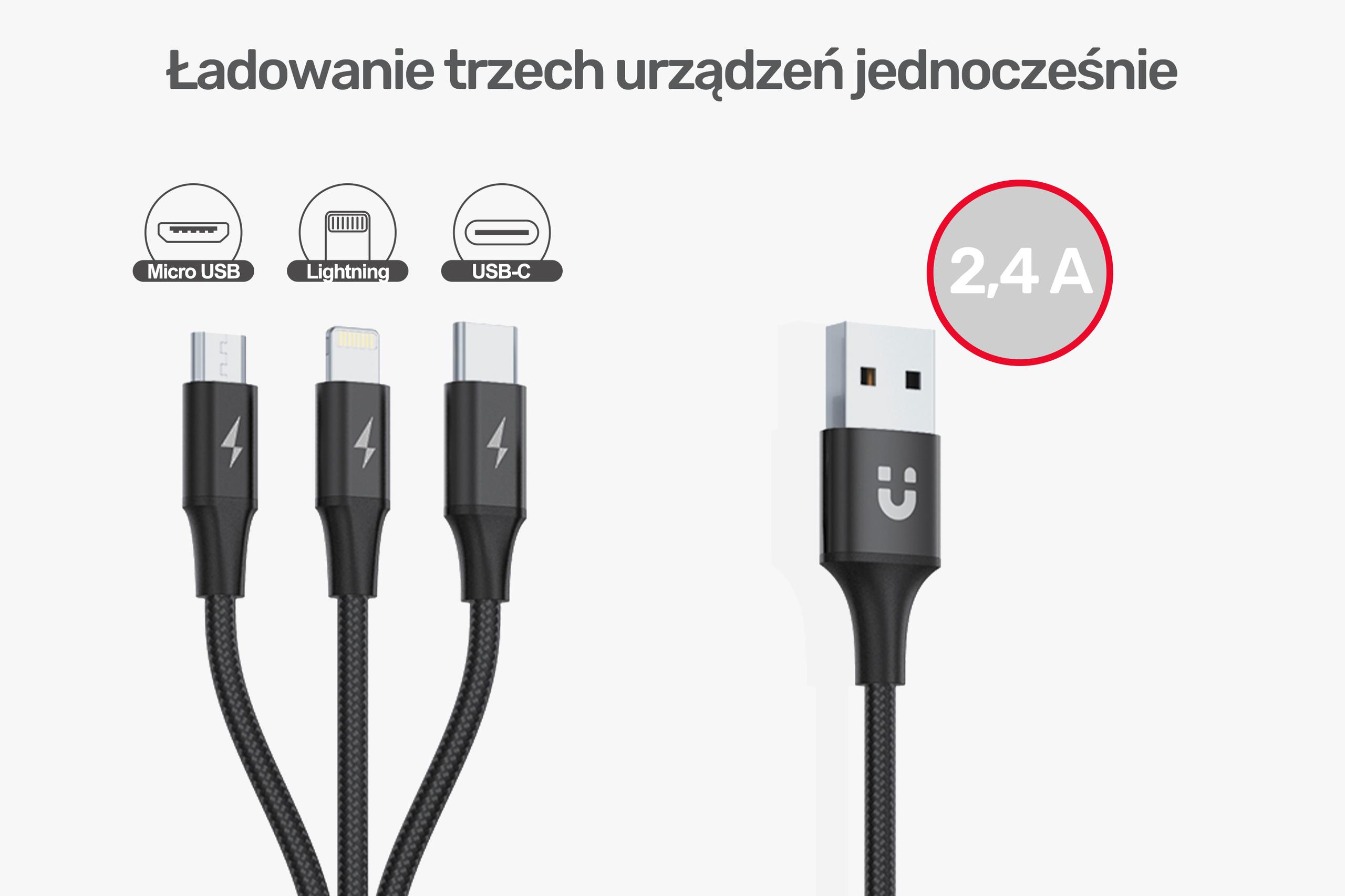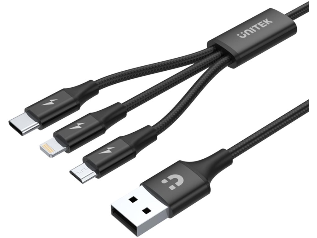 Nabíjecí kabel Unitek USB 3 v 1, černý