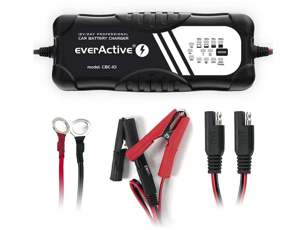 - Inteligentní, procesorový nabíječka everActive CBC-10 je určena pro oblíbené 12V a 24V baterie používané v automobilovém průmyslu a průmyslových aplikacích .
