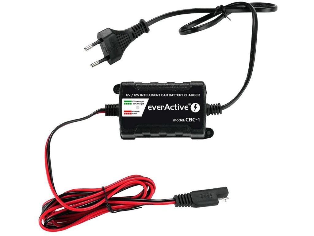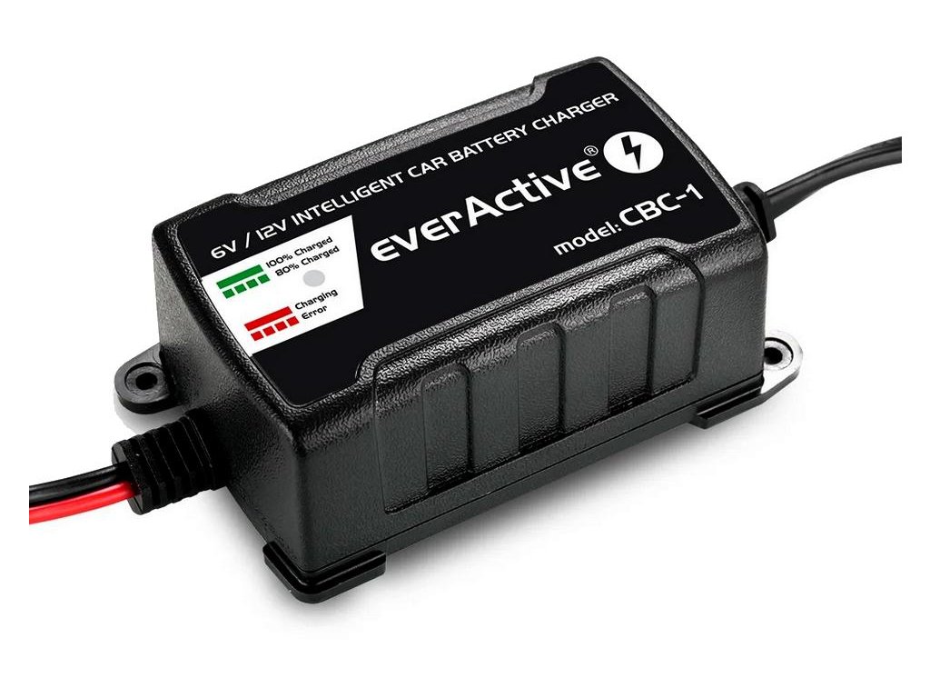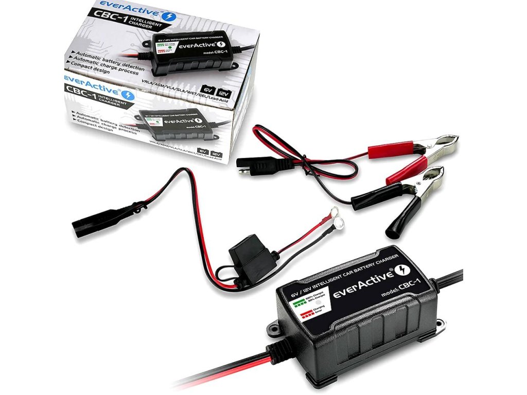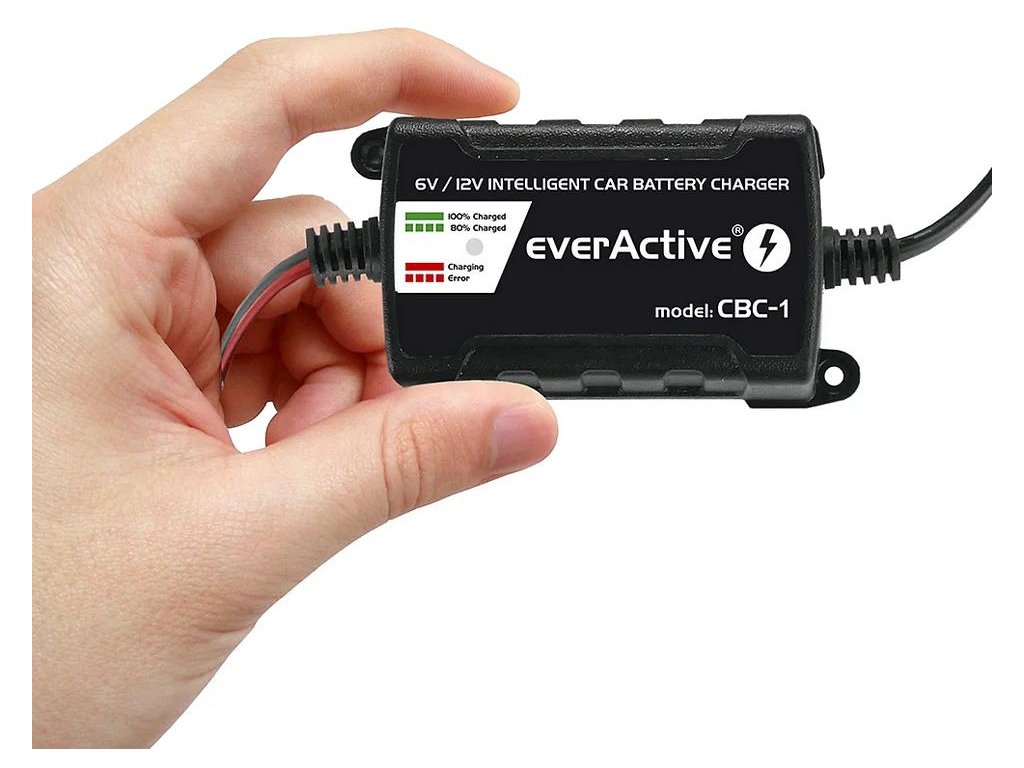- Nabíječka everActive CBC-1 má také funkci automatické detekce 6V / 12V baterií a vzhledem k tomu, že ł nabíječka je vybavena kompletní sadou bezpečnostních prvků ochrana proti zkratu, špatnému zapojení pólů, přehřátí, přetížení atd. poskytuje 100% bezpečnost!