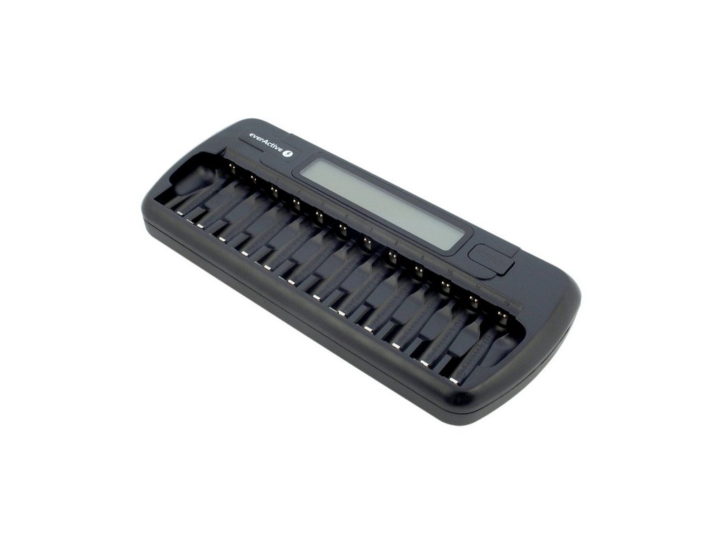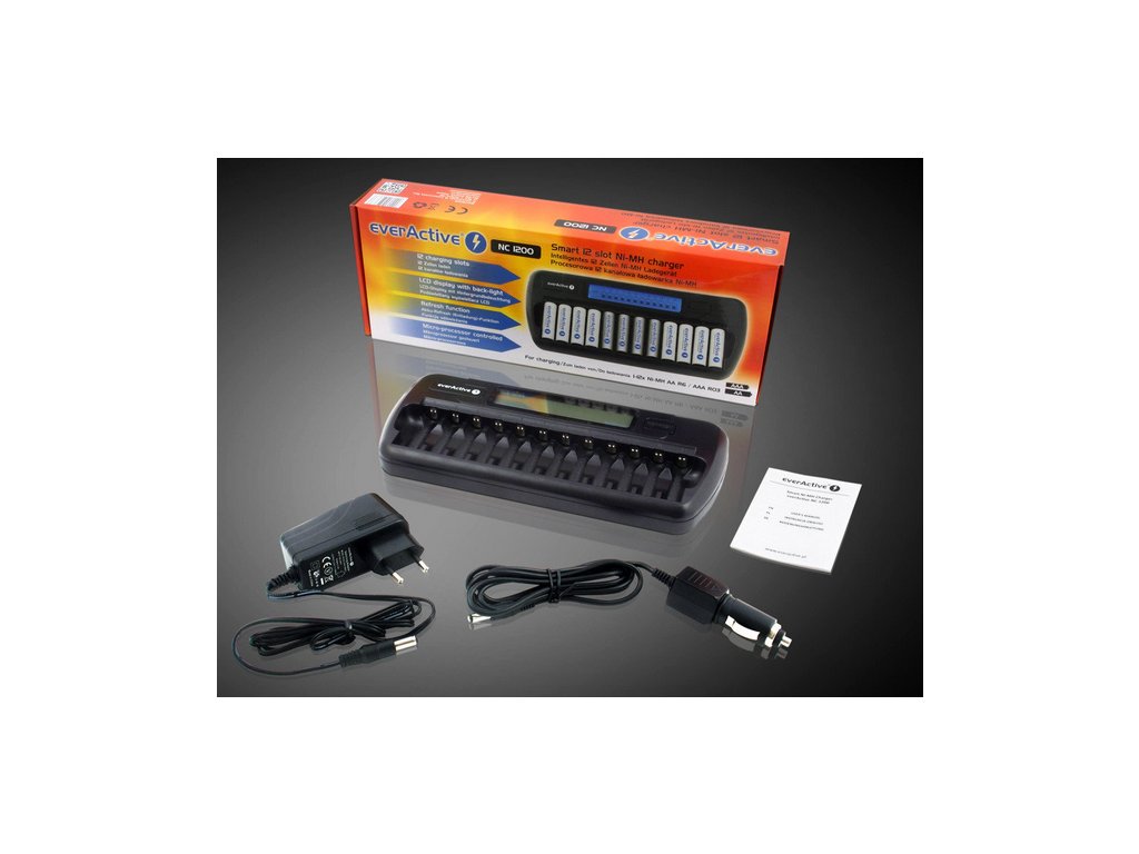 Nabíječka everActive NC 1200 má až 12 nezávislých nabíjecích kanálů pro akumulátory Ni-MH velikosti R6/AA nebo R03/AA, každý článek se nabíjí samostatně .