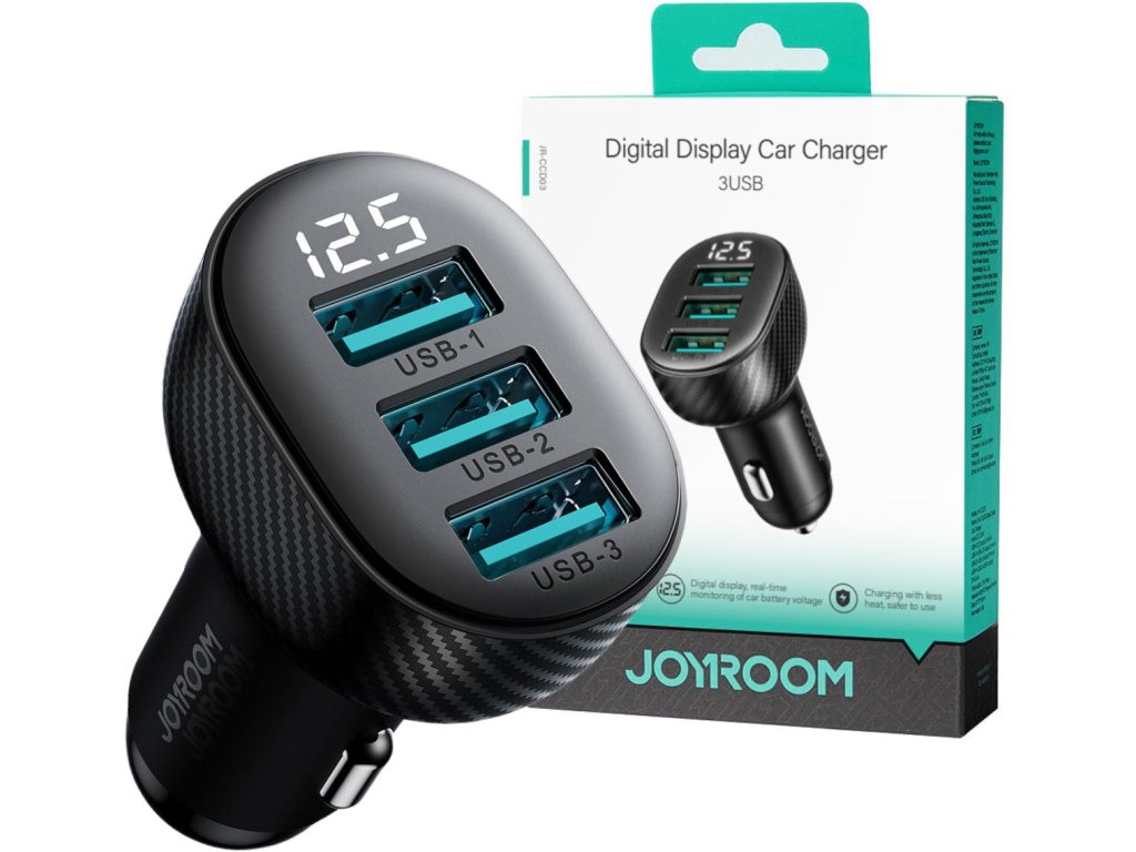 Nabíječka do auta 3,4 A s displejem 3 x USB-A 17W Joyroom JR-CCD03 je ideální řešení pro lidi, kteří potřebují v autě nabíjet více zařízení současně .