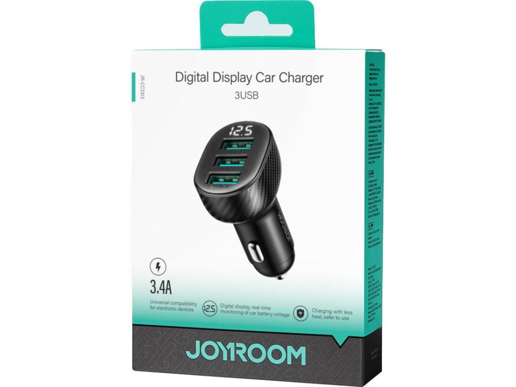 3,4A nabíječka do auta s displejem 3 x USB-A 17W Joyroom JR-CCD03 - Klíčové vlastnosti: