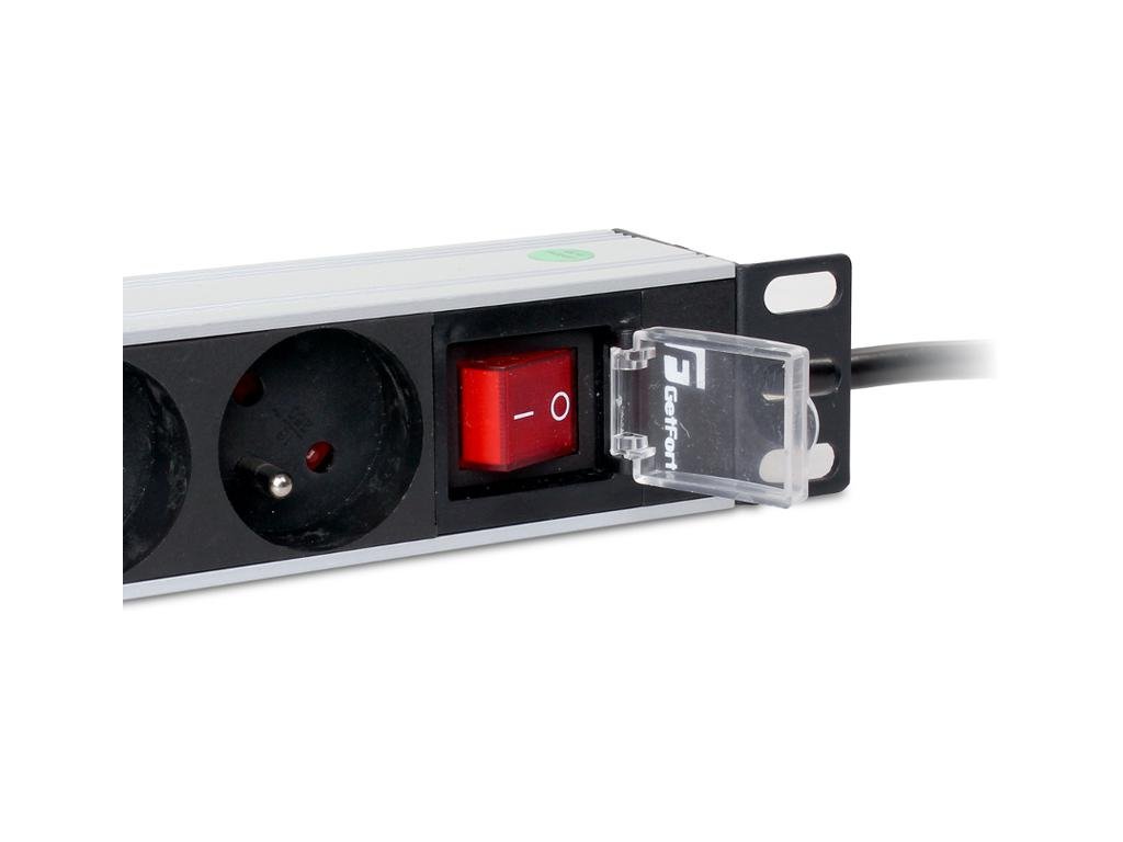 Horizontální tříportová napájecí lišta s dvoupólovým vypínačem pro rychlé zapnutí a vypnutí připojených zařízení. Napájecí lišta má výšku 1U a upevňovací vzdálenost, která dokonale vyhovuje všem 10" stojanům.