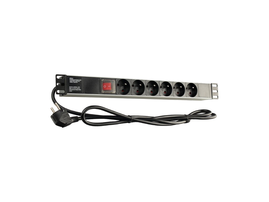 Horizontální 6portová napájecí lišta s dvoupólovým vypínačem pro rychlé zapnutí a vypnutí připojených zařízení. Napájecí lišta má výšku 1U a montážní rozteč, která dokonale vyhovuje všem 19palcovým skříním, a to jak nástěnným, tak podlahovým.