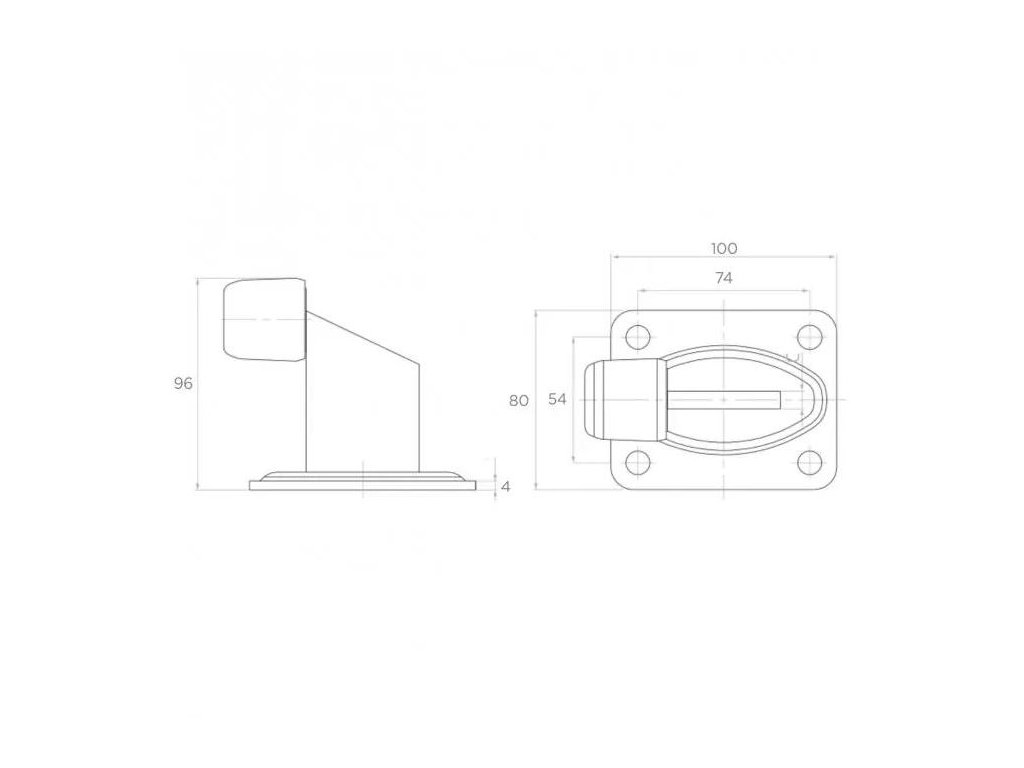 Vnější nárazník (nárazník, koncový doraz, zarážka) s deskou, který se používá pro posuvné brány (samonosné a kolejnicové), křídlové brány, zavěšené brány a branky. Montáž do země - má čtyři montážní otvory a lze ji také přivařit. V případě křídlové brány lze použít dva nárazníky, pro každé křídlo zvlášť. Výrobek je pozinkovaný a gumový kryt chrání branku nebo bránu před poškozením. Má desku o rozměrech 100x80 mm.