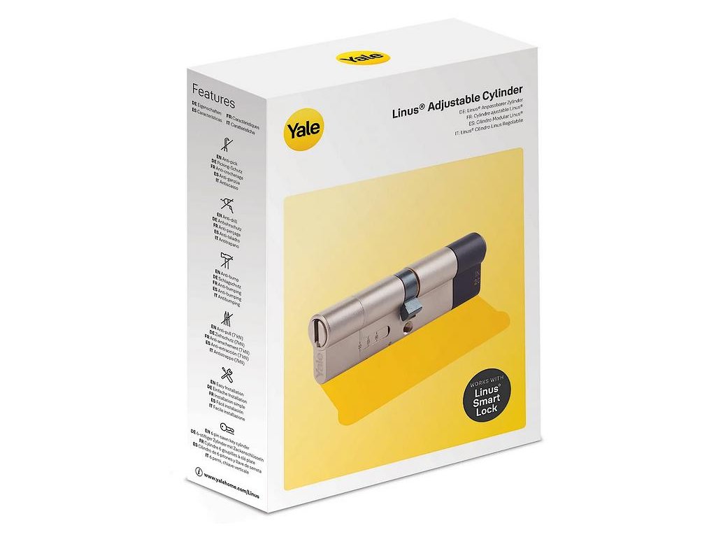 - Nastavitelná cylindrická vložka Linus® - zaručuje spolupráci s inteligentním zámkem Linus®. Není třeba měřit dveře, protože nastavitelná cylindrická vložka je navržena tak, aby se přizpůsobila vašim dveřím.