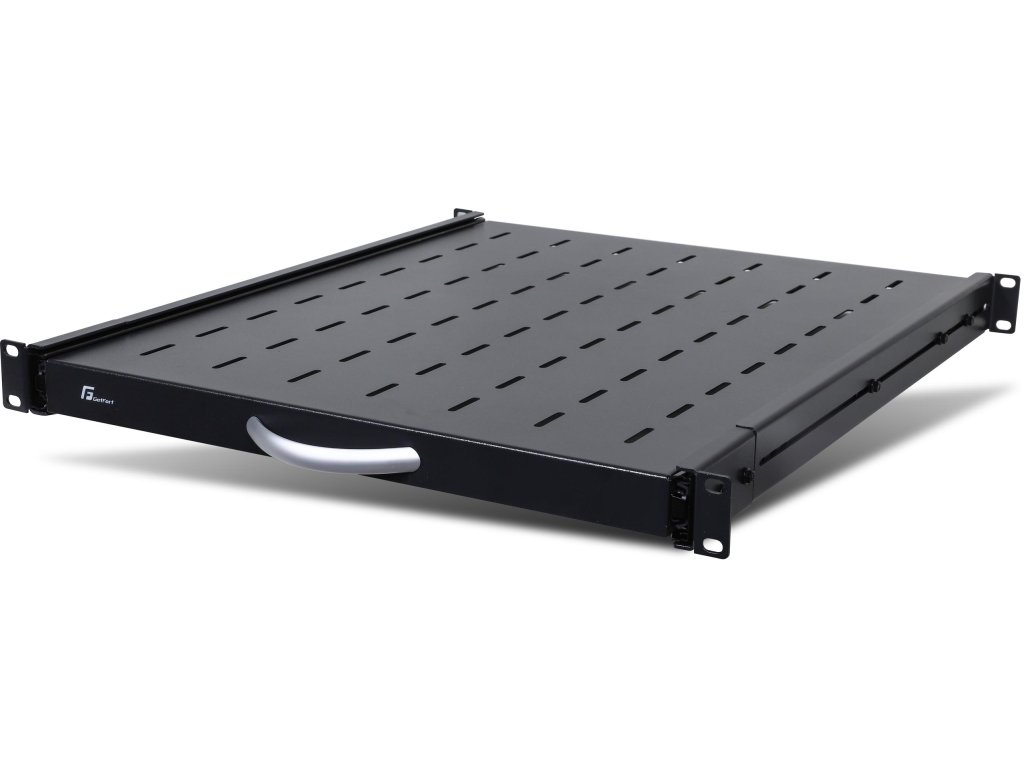 Výsuvná police určená k instalaci do stojanových regálů o hloubce 800 a 1000 mm. Díky plnému výsuvu je možný přístup k zařízením mimo rack. Nastavitelná rozteč montážních lišt umožňuje přizpůsobení stojanům různé hloubky.