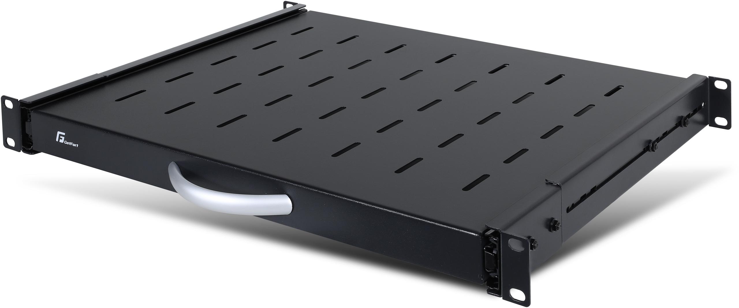 Výsuvná police je určena pro instalaci do nástěnných regálů o hloubce 450 mm a 600 mm a do stojanových regálů o hloubce 600 mm. Díky úplnému vysunutí je možný přístup k zařízením mimo rack. Nastavitelná rozteč montážních lišt umožňuje přizpůsobení různě hlubokým rackům.