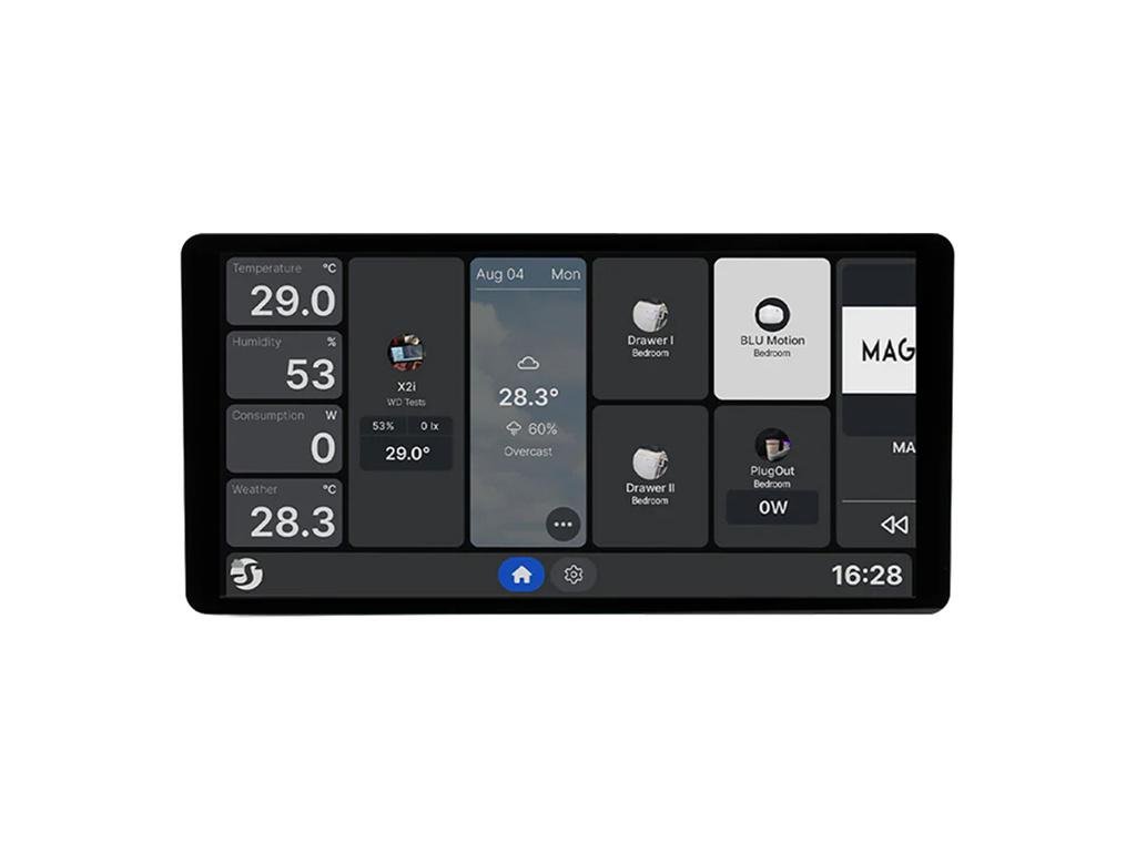 Shelly Wall Display X2i je moderní ovládací panel určený pro inteligentní správu domácnosti. Je vybaven 6,95palcovým barevným dotykovým displejem a rychlým čtyřjádrovým procesorem a umožňuje plynulé a intuitivní ovládání osvětlení a spotřebičů. Vyměnitelná napájecí základna poskytuje flexibilitu při montáži a integrované 5 A relé umožňuje přímé ovládání jednoho okruhu. Podpora Wi-Fi 6 a Bluetooth 5.0 zajišťuje stabilní připojení a možnost napájení jak z USB-C, tak ze standardního zdroje 100-240 V~ poskytuje plnou flexibilitu při instalaci.