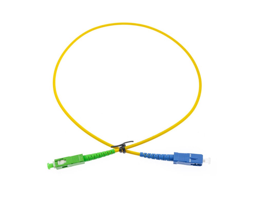 Optický patchcord typu SIMPLEX o průměru 3 mm, typ konektorů SC/APC-SC/UPC. Patchcord umožňuje například propojení optických portů v teleinformačních skříních.