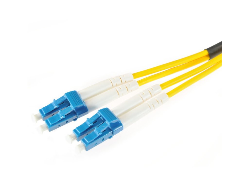 Optické vlákno patchcord typu DUPLEX o průměru 3 mm, typ konektoru LC/UPC-LC/UPC. Patchcord umožňuje například propojení optických portů v datových rozváděčích.