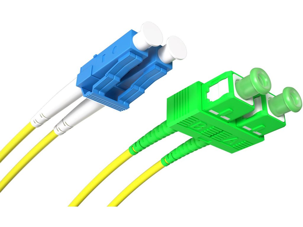Jednovidový optický patchcord s duplexními konektory SC/APC-LC/UPC, délka 3 m. Patchcord vyrobený na vlákně G.652D (SM 9/125).