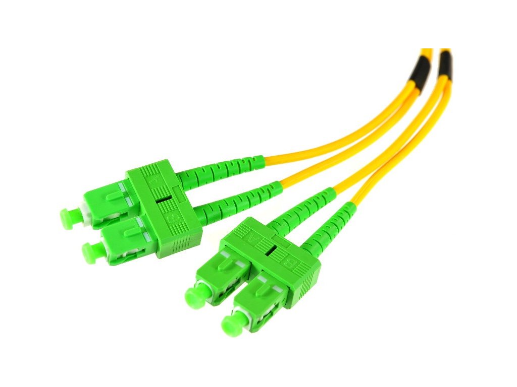 DUPLEX optický patchcord o průměru 3 mm, typ konektorů SC/APC-SC/APC. Patchcord umožňuje například propojení optických portů v teleinformačních skříních.