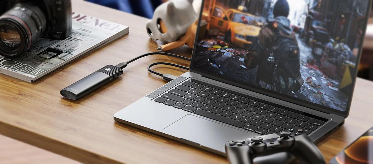 Skříň M.2 má vysokorychlostní port USB-C 5 Gb/s a odpovídající 30 cm dlouhý kabel USB-A, který je součástí balení. Pomocí tohoto kabelu jej připojíte k notebooku nebo počítači s portem USB-A. Pokud chcete připojit chytrý telefon nebo tablet s portem USB-C, stačí použít vhodný adaptér, například Orico CBT-UT01-BK-BP.