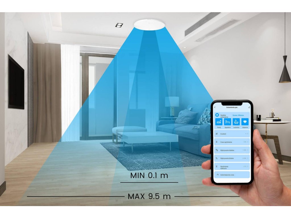 - Detekce přítomnosti: Přesná detekce pohybu, která minimalizuje spotřebu energie.