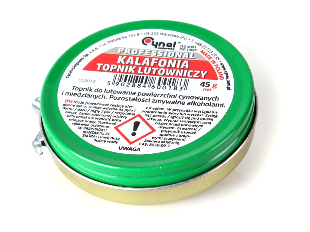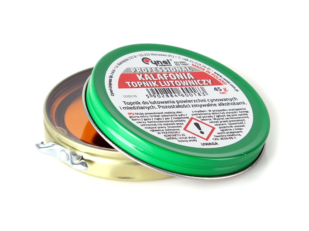 Pomáhá při pájení a slouží jako základ pro hlavní tavidlo (25% roztok v izopropylalkoholu).