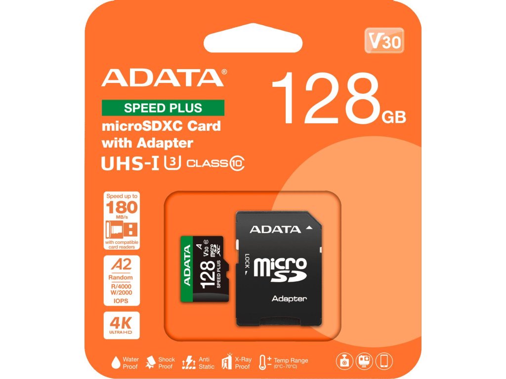 Paměťová karta Adata microSD Speed Plus 128GB UHS1 U3 V30 A2 180/160 MB/s