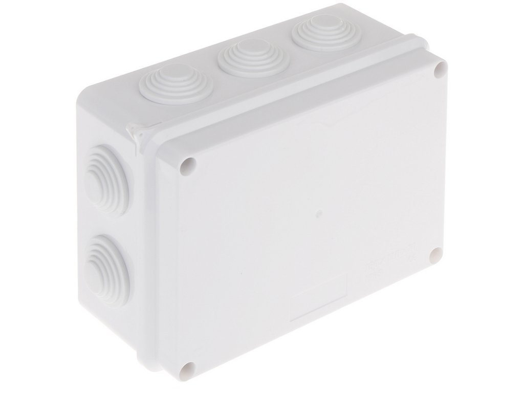 Povrchová, izolovaná, 10-ti vstupní rozbočovací krabice s vývodkami bez závitu.
