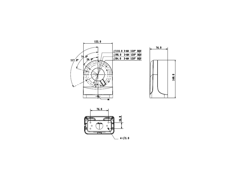 - Použití: Držák pro montáž stropní kamery na stěnu, fasádu.