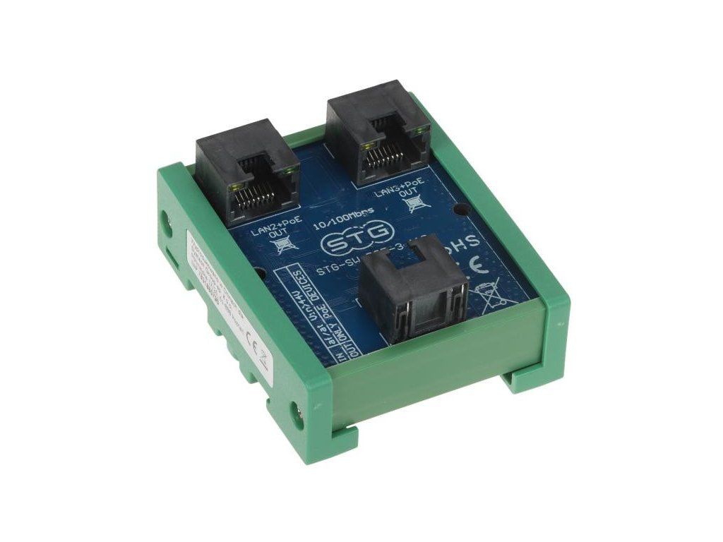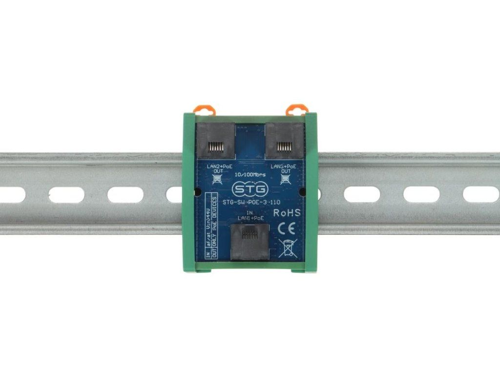 STG-SW-POE-3-110 je navržen jako standardní PoE switch, který je napájen z jednoho portu (LAN+POE1). Díky schopnosti napájet z jednoho portu a přenášet napájení do dalších dvou portů může plnit funkci extenderu (LAN/PoE extender) a umožnit připojení zařízení na celkovou vzdálenost 200 metrů.