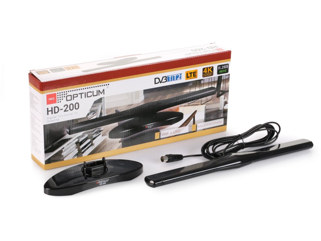 - Anténa DVB-T OPTICUM HD-200 umožňuje příjem digitálních pozemních televizních signálů v pásmech VHF a UHF.
