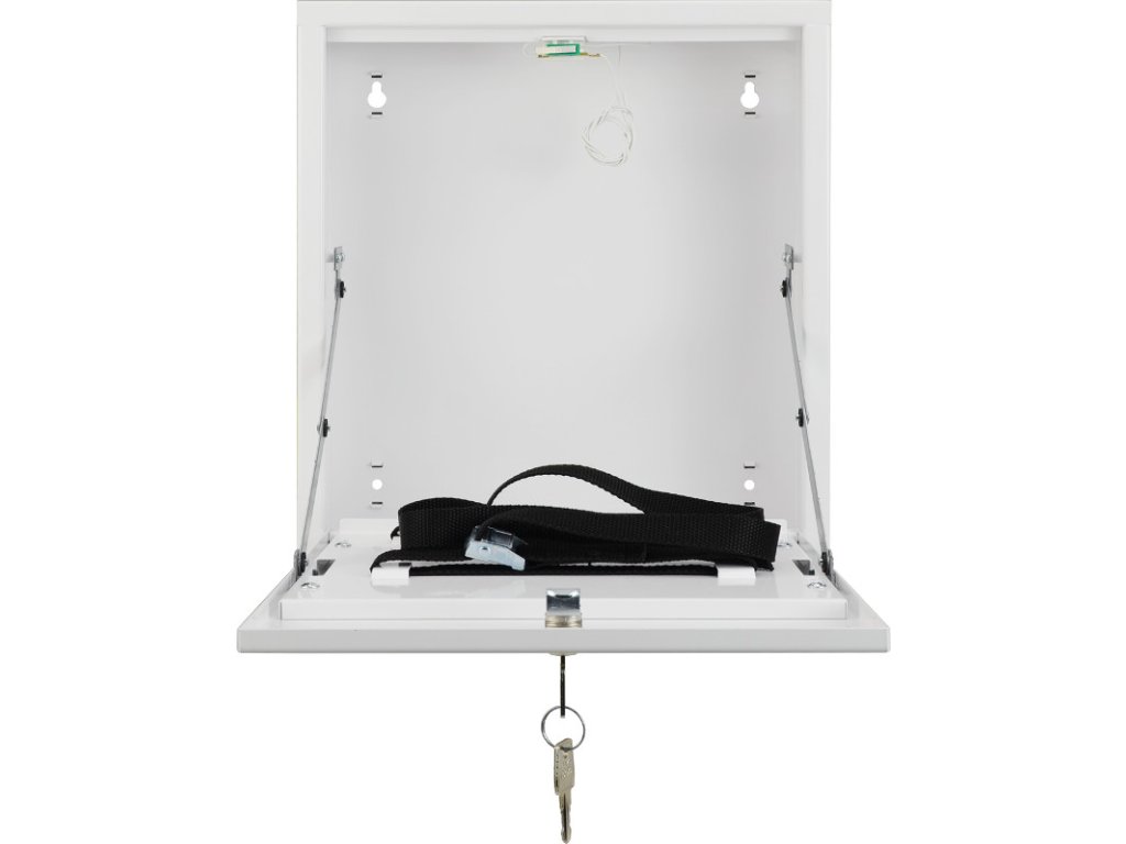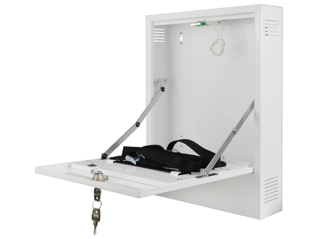 Díky vertikální montáži a malé hloubce skříně je ideálním řešením tam, kde nelze instalovat hluboké skříně nebo 19" skříně RACK.Při otevření skříně je záhlaví drženo ve vodorovné poloze, což umožňuje snadný přístup k tlačítkům umístěným na předním panelu rekordéru.Skříň využívá speciální držák s upínacími popruhy, který umožňuje instalaci rekordérů s rozměry: šířka až 260 mm, výška až 62 mm, hloubka až 250 mm.