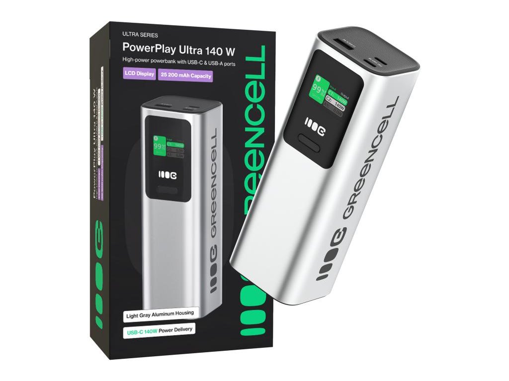 POWERBANK Greencell PowerPlay Ultra 25200mAh RYCHLÉ NABÍJENÍ 140W 2x USB-C PD 1x USB-A
